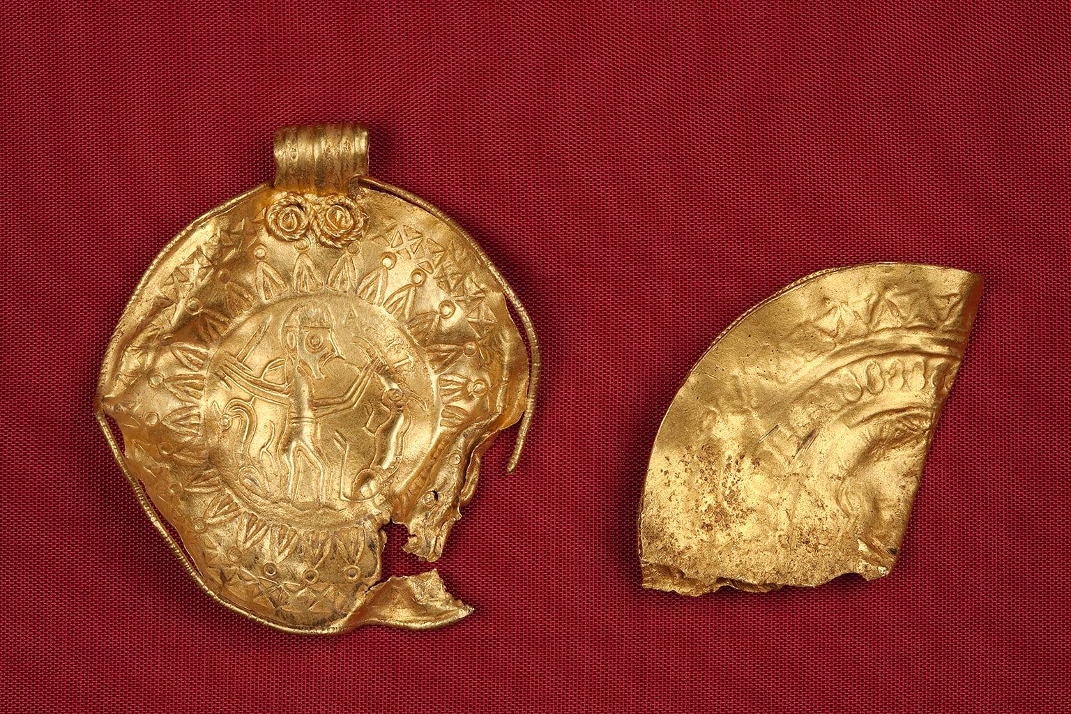 A pair of rare Scandinavian pendant ornaments inspired by the designs of late Roman coins. They join two bracteates already in the Norwich Castle collection, together comprising the first hoard of its type.
