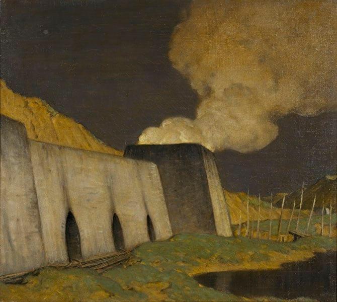'The Burning Kiln' in a bleak landscape. One of nineteen gifts to fifteen museums by Sir Michael Sadler through the Art Fund between 1921 and 1942.