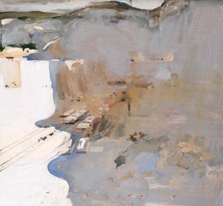 With its highly unusual subject matter, virtuosic balance of tones and remarkably modern treatment of the scene, this painting confirms Arthur Melville’s status as one of the most innovative British painters of the late 19th century. Melville was born in Forfarshire (now Angus), and trained at the Royal Scottish Academy. He sold his early painting A Cabbage Garden (1877; bought for the Scottish National Gallery with Art Fund support in 2007) to an East Lothian industrialist to finance studies in Paris, where he worked between 1878 and 1880. The emphasis on tonal harmony that he discovered in avant-garde French painting had a profound influence on his own practice, and by the time he met James Guthrie, George Henry and E.A. Walton – painters who, together with Melville, would come to be known as the Glasgow Boys – his distinctive style was already established. Perhaps because of its stunning experimentalism, The Chalk Cutting (1898) was never exhibited in Melville’s lifetime. The portrayal of contemporary industry was unusual not only among the work of Glasgow Boys, but across Victorian art as a whole. To the left of the painting, the light reflecting from the chalk cliffs is rendered as a block of luminous white, while to the right Melville portrays the dust-obscured cutting in broad impressionistic strokes of grey punctuated by select details – the line of the cliffs along the top of the canvas and a group of red-headed chickens piercing the dust cloud offer bursts of colour in an otherwise muted scene.