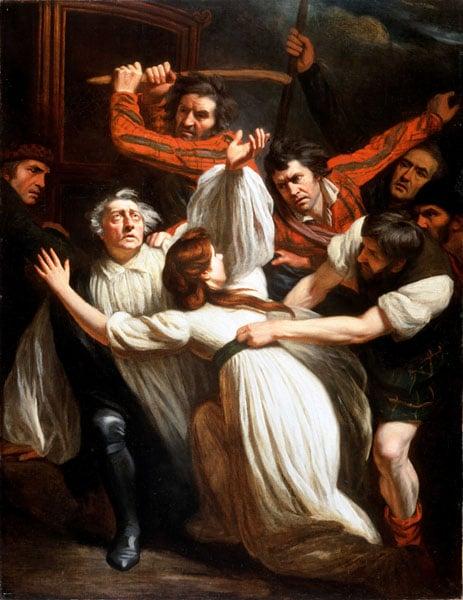 James Sharp, was made Archbishop of St Andrews and Chancellor of the University of St Andrews in 1661. The painting depicts his assassination by a group of Presbyterian Fife Lairds in 1679, an event of key importance in the turbulent history of conflict between church and government in Scotland in the 17th century. Sharp was a former Presbyterian minister whose appointment as Archbishop was seen as a betrayal by most Presbyterians. It sparked the so-called 'Killing Time' of sectarian violence between Covenanters (extremist Presbyterians) and government troopers charged with enforcing Episcopalian rule.