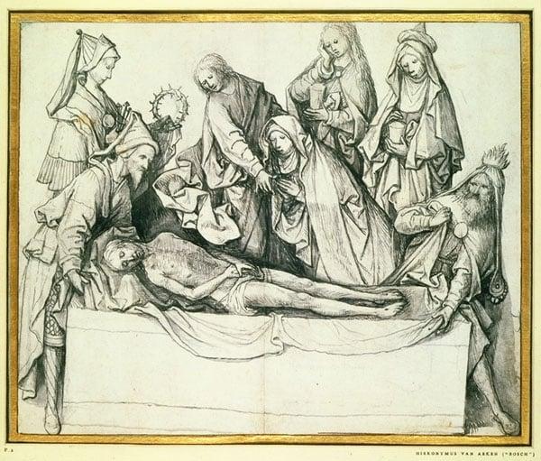 This rare sketch is drawn with the point of a brush over a preliminary sketch in black chalk, and signed 'Jheronimus Bosshe' in faint black chalk in a style which suggests it is a signature. Part of a grant for 9 works.