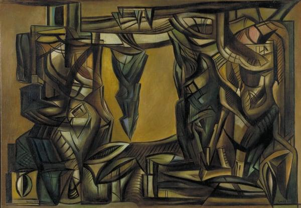 The subject is based on a gruesome sight which the artist witnessed - the body of Mussolini suspended by the feet in the town square in Milan after the dictator's execution on 28 April 1945