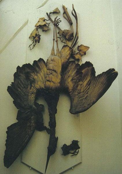 T W Wallis was apprenticed as a woodcarver in Hull and did work for Burton Constable Hall before setting up business in Louth in 1843. He specialised in carving dead game and foliage from a single piece of limewood after working up the model in clay. Louth Museum already has the clay model of this carving. His work has many similarities with the style of Grinling Gibbons and he won many medals including one at the Great Exhibition of 1851. His trademark was a small snail which can be seen on the heron's beak. This work was acquired with the support of the Art Fund with the assistance of the Esmée Fairbairn Foundation.
