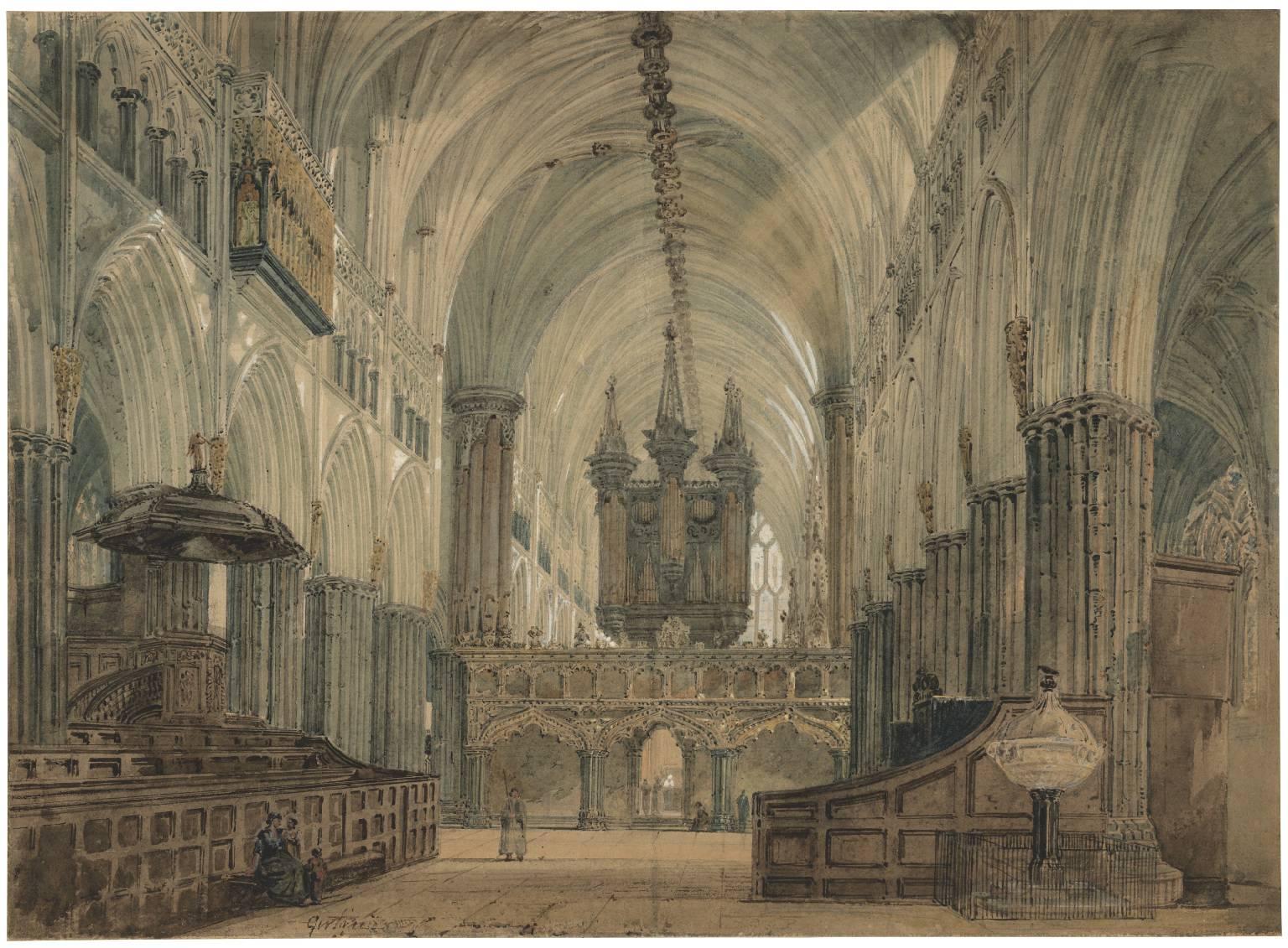 Thomas Girtin, best known for his picturesque watercolours of the English countryside, was equally adept at architectural studies. This interior of Exeter Cathedral demonstrates his extraordinary skill in such work.