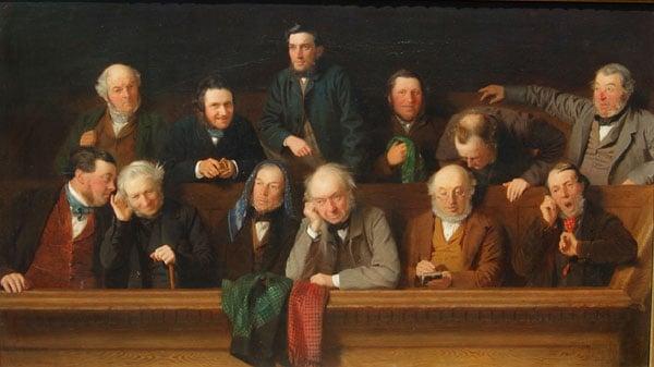 The work depicts 12 local figures sitting as a jury, who are all listed in a plaque beneath the painting. It was painted at the Assizes held at County Hall, Market Square, Aylesbury and includes a man who is hard of hearing. This can be seen as Morgan's comment on the disadvantages of the jury system and his invitation for viewers of the painting to consider the inadequacies of the legal system.