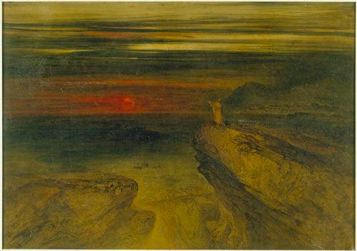 The work illustrates Thomas Campbell's poem of the same name, published in 1823. It corresponds closely with the four stanzes which accompanied the work when exhibited in 1833 beginning 'The sun has a sickly glare, The earth with age was wan, The skeleton of nations were, Around that lovely man...'.