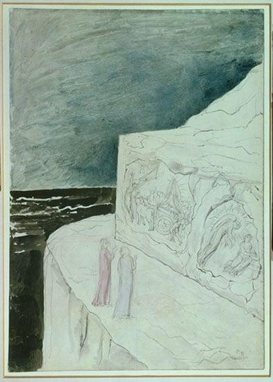 A drawing from the series to illustrate Dante's 'Divine Comedy'. Few of the Dante drawings were completely finished, and only seven engraved, but the series is one of the biggest undertaken by Blake and the last legacy of his imagination.