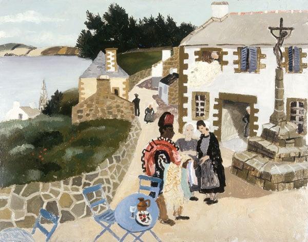 This is one of Christopher WoodÂ’s largest and last works, painted shortly before his early and tragic death. His direct, naïve style captured a romantic, spiritual quality in the landscape and people of Cornwall and Brittany and their shared Celtic culture. This work was painted during Wood's second visit to Brittany. Following the advice of Cedric Morris, he stayed in the tiny fishing village of Tréboul where he was excited by the simplicity of the fishing community and the mysteries of its rugged landscape. This painting depicts the exotic figure of an African rug seller selling his wares in TréboulÂ’s village square surrounded by villagers in traditional costume. This work was acquired with assistance from the Wolfson Foundation.