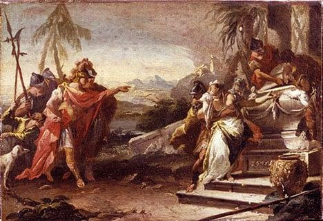 In this scene taken from classical mythology, Neoptolemus advances from the left-hand side of the painting to direct the sacrifice of Polyxena, while Polyxena is steered towards the opened tomb of Achilles. This painting was part of a collection of 117 works belonging to the industrialist and engineer F.D. Lycett Green and bequeathed to York through the Art Fund, in 1955, in recognition of the remarkable efforts made after the Second World War by its curator to transform it into a gallery of international importance.