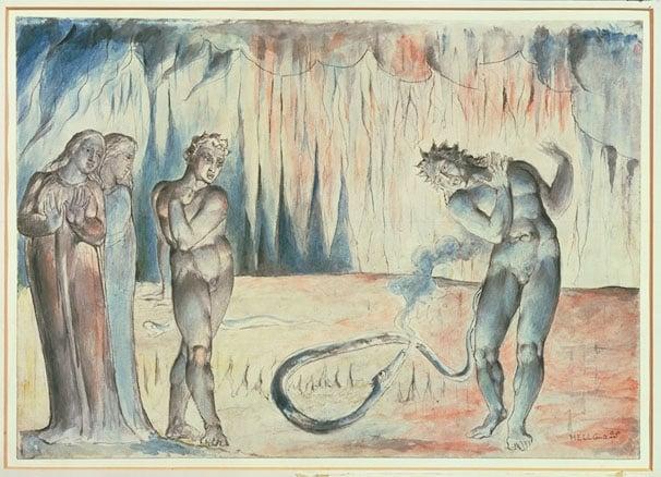 Verso: A Man with a Transparent Hood over his Head. A drawing from the series to illustrate Dante's 'Divine Comedy'. Few of the Dante drawings were completely finished, and only seven engraved, but the series is one of the biggest undertaken by Blake and the last legacy of his imagination.