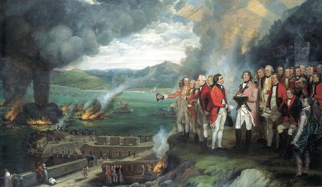 General Elliot and his officers observing the destruction of floating batteries during the Siege of Gibraltar.