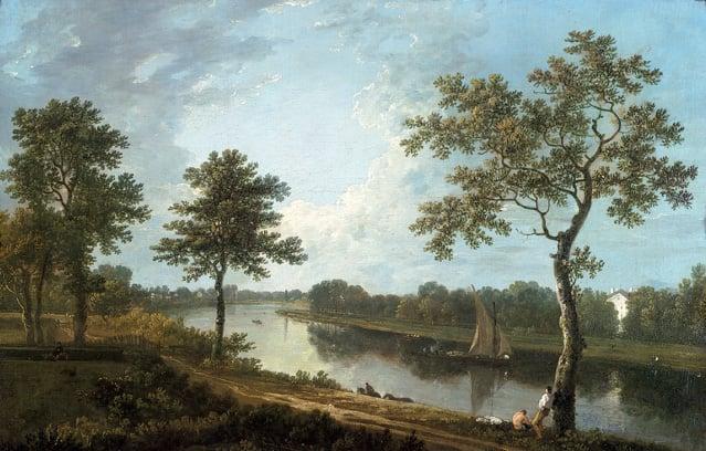 View from the South bank of the Thames looking upstream towards Twickenham.