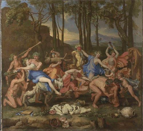 The composition of this painting is highly centralised, with the revellers arranged in a tightly knit group around the figure of Pan. They are participating in this highly formal arrangement, a ceremonial dance which is both an exuberant display of erotic energy and a celebration of fertility. This painting is a milestone in Poussin's career, and shows him with characteristic rigour reforming his style by turning to the examples of classical antiquity and the early Renaissance. For his contemporaries it must have seemed like a reversion to primitivism, but it nevertheless established the basis of the style which was to serve him for the rest of his career.