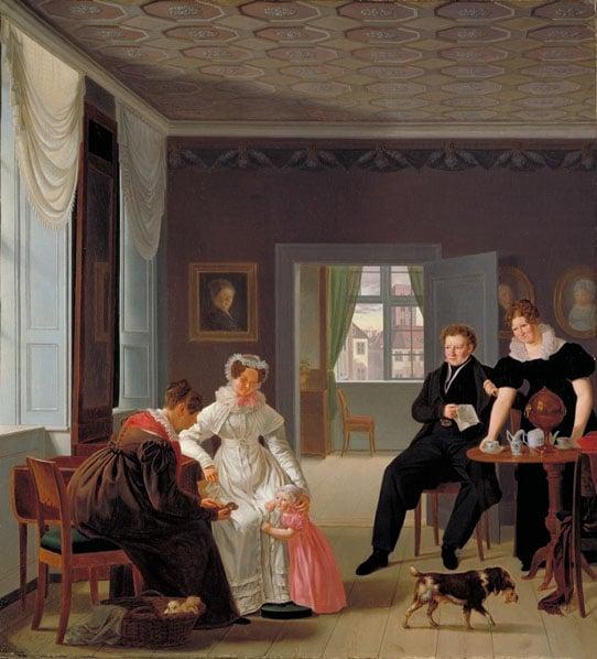 Group portrait of Johan Christian Winther, a Copenhagen jeweller, with his wife Thornally, two sisters Justine & Catherine, and daughter Johanne.