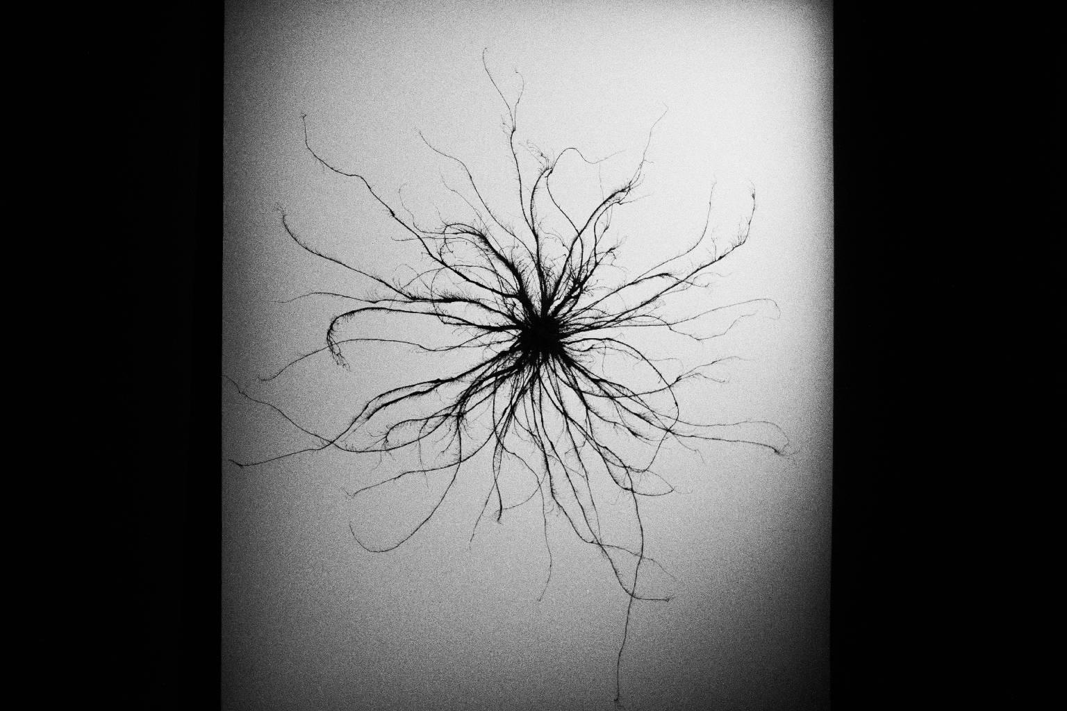Thistledown is one of a series of large-scale ink drawings made specially for this show. The soft, feathery part of a thistle is depicted as an alien object, both beautiful and strange. Sharrocks has said of these drawings that ‘they are as much about death as about life’.
