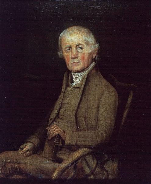 A portrait of Thomas Wilkinson (1751-1836) sitting holding a book upright on his lap with one hand. Wilkinson was a Quaker and minor poet and writer who was well connected with Burke, Clarkson, Wordsworth and Coleridge. He is best known for inspiring lines in Wordsworth poem 'The Solitary Reaper'.
