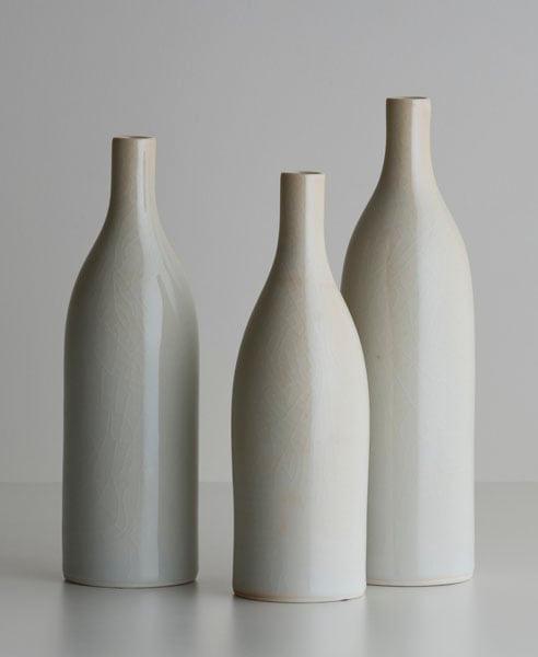 This work is characteristic of Piggott's pale celadon type glazes. The three bottles offer a harmonious composition based on simple minimal forms but the arrangement emanates a stately presence. Piggott began to develop her most distinctive approach to ceramics in the 1980s and has pioneered the concept of grouping forms to create still life arrangements. Piggott worked with Ray Finch, Bernard Leach and Cardew in the 1960s and this piece makes a beautiful link to Aberystwyth's core collection of early studio potters.