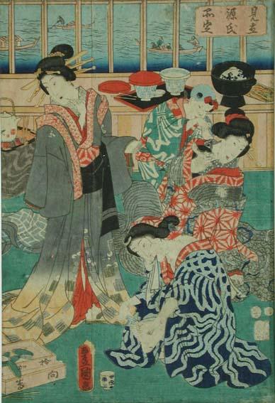 Three courtesans at their toilet one assisted by a boy, 1786–1864