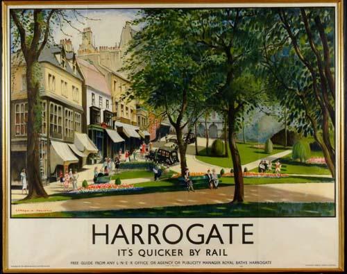 1) 'Harrogate' by Gordon Forsyth, printed by Waterlow, 1939 illustrating the Montpelier area of Harrogate. 2) 'Harrogate, The Royal Baths' by Fred Tittenson, printed by Jordison, 1941. 3) 'Harrogate' by Fred Taylor, printed by Waterlow, 1938.