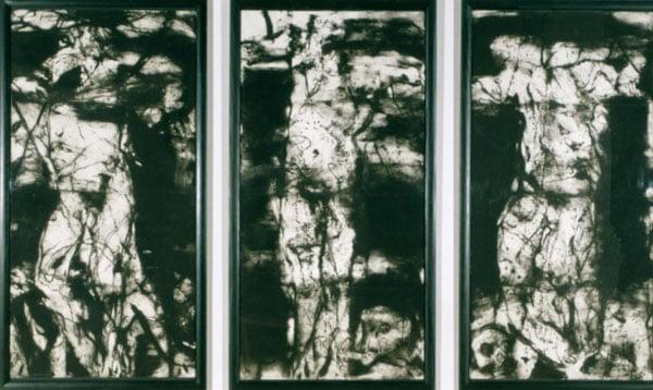 A study of three naked forms, each figure depicted crucified. The image is not about a literal interpretation of the biblical story but rather presents a universal image of extreme suffering. This is edition 9 /10. Another edition of the same work for the Fitzwilliam Museum was supported by a grant in 1997 (see Review number 4412).