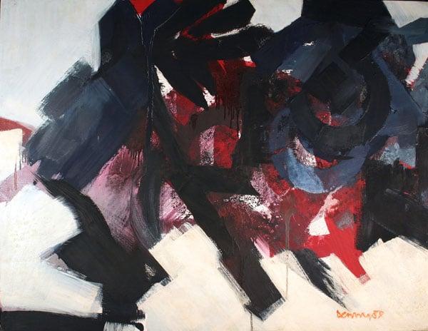 Robyn Denny taught at Bath Academy of Art from 1959 to 1965. Denny rapidly became an established international figure. In 1973 he was the youngest living British artist to have a retrospective at the Tate Gallery in London. This painting combines abstract expressionist brushwork with the insertion of letter forms and numerals, reflecting the influence of not only new American painting, but also of advertising, the media and other manifestations of a 1950s urban dynamic. The picture represents the artist at a key moment in his career, one that corresponds to his time at Bath. This is the first work by Denny to be acquired by the gallery.
