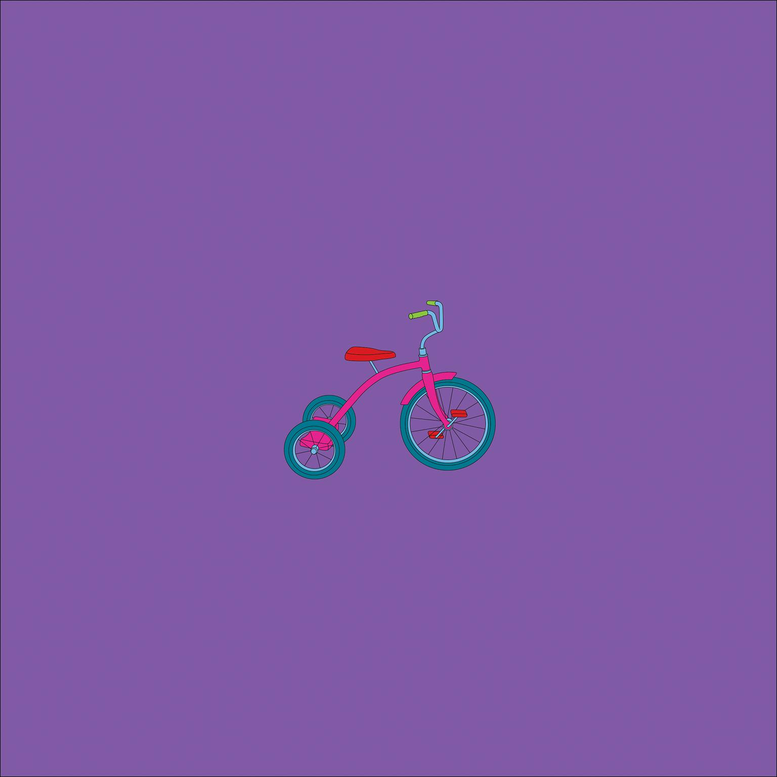 Michael Craig-Martin’s painting Tricycle shows a meticulous image of a child’s tricycle against a vivid mauve background.