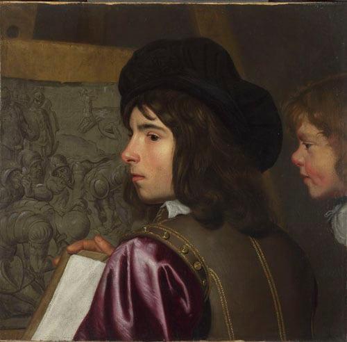 On the easel is a grisaille of the story of Gideon from Judges 7: 5-6.