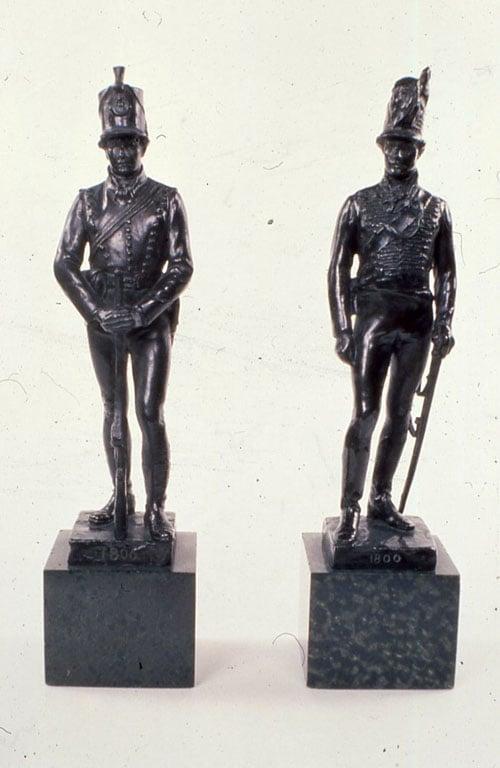 Napoleonic Soldier 1800 and 1808. Two reduced figures of the life-size statues on the Rifle Brigade Memorial, Grosvenor Gardens. Part of a bequest to two museums by Sir Richard Allinson through the Art Fund in 1959.