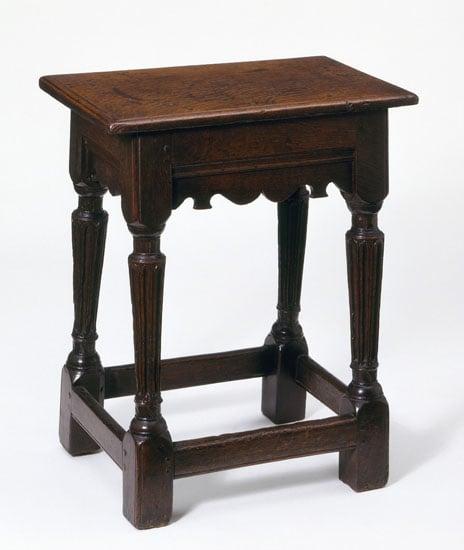 Late 17th century. Gate-leg table, joined and turned oak. Mid 18th c. Gate-leg table, turned mahogany. Card-table, carved and turned walnut. Circa 1700. Pair of stools, joined and turned oak . Circa 1600 Arm-chair, carved mahogany. Circa 1760 Pole-screen, carved mahogany. circa 1760. Part of a donation of 16 gifts and 1 bequest to five museums by the Brigadier Clark Fund through the Art Fund between 1936 and 1992.