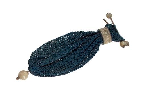 1) Blue silk net purse belonging to Lord Nelson. Taken by his friend Captain Hardy and retained in the family until 1880. 2) Small purse of knitted lace and silk belonging to Captain Hardy.