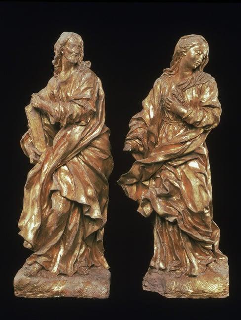 For a series of large statues of Christ, the Virgin and the twelve Apostles, to be placed against the columns and the nave. The statues have disappeared. The commission was given to Mazzuoli through the influence of Cardinal Flavio Chigi.