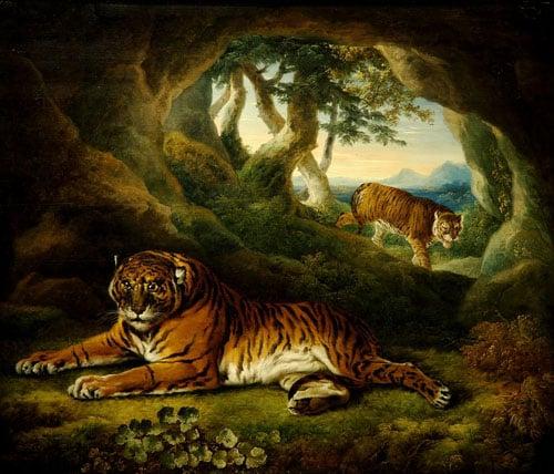 A tiger in the foreground was originally believed to have been painted by George Stubbs, but this was refuted by Basil Taylor.