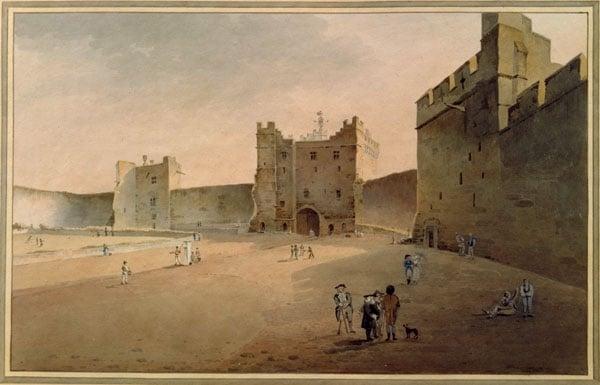 Two views of Lancaster Castle: 1) 'A View of Lancaster Castle Looking Towards the Keep' and 2) 'A View of Lancaster Castle Looking Towards the Gatehouse'. Part of an extensive collection of 111 drawings and watercolours by largely British artists, which was allocated to 5 museums throughout the country.