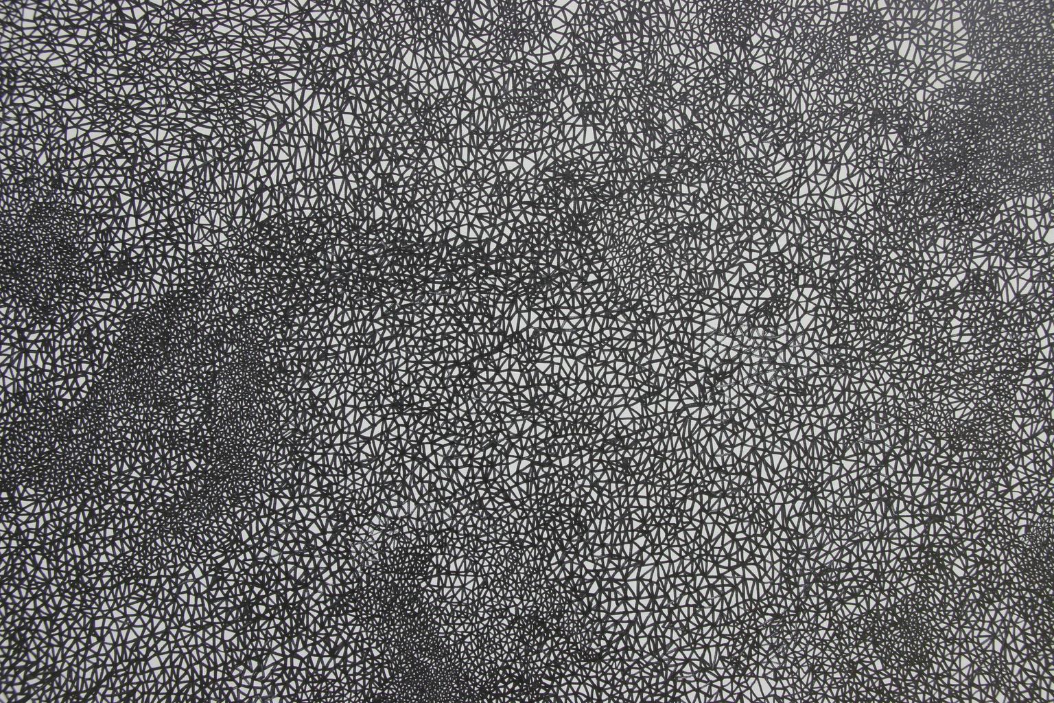 Graham Gussin created Unresolved Material for his 2012 solo show at New Art Centre. The rippling monochrome surface is formed from the accumulation of geometric shapes, drawn in ink, on the canvas.