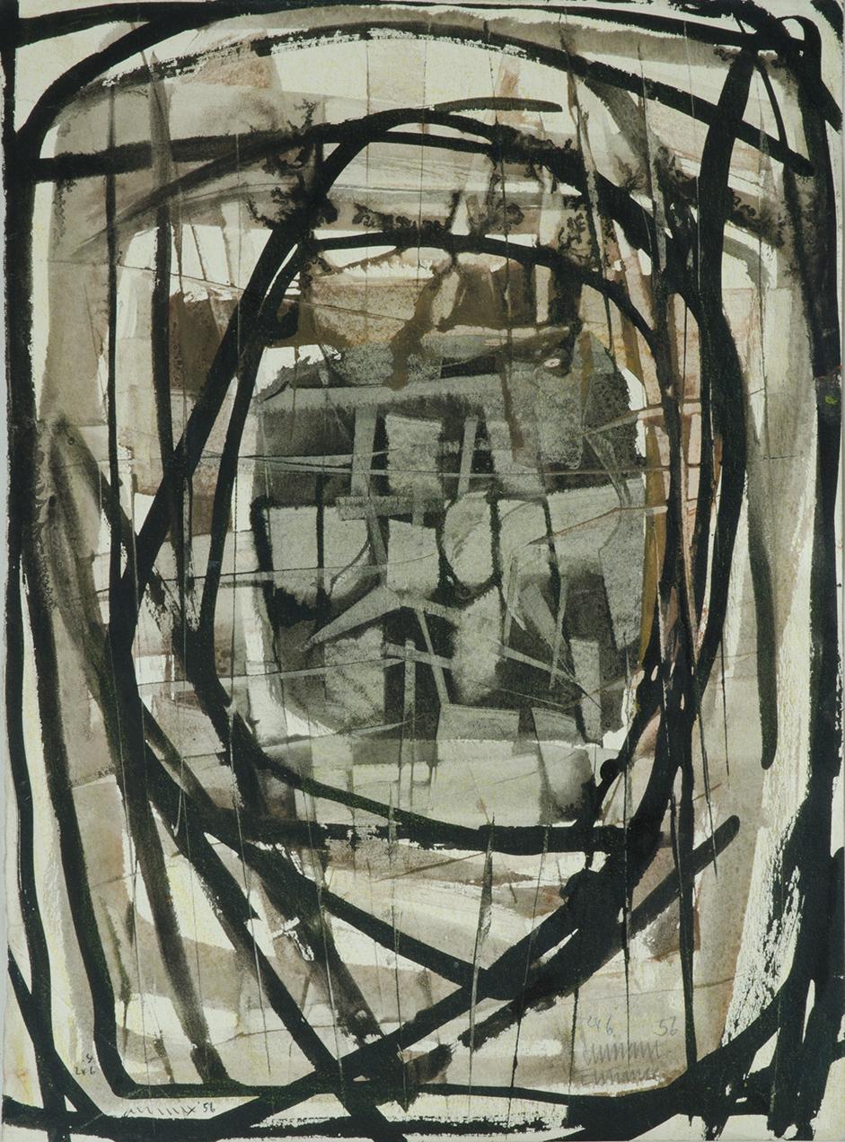 Roy Turner Durrant was born in Lavenham, Suffolk, and trained at Camberwell School of Arts and Crafts. His abstract paintings and drawings are associated with the Neo- Romantic tradition in British art. Southampton City Art Gallery holds Durrant’s watercolour May Night in the Dingle, and Untitled (Black and Cream Abstract) now joins it there.