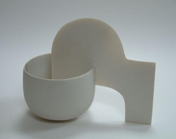 This piece is an excellent example of her delicate porcelain sculptures based on a bridging form. In scale and outline it makes relationships with vessels and even domestic ceramics but in other aspects it might almost be a maquette for a much larger work. The work is an excellent addition to the University's strong academic ceramics collection.