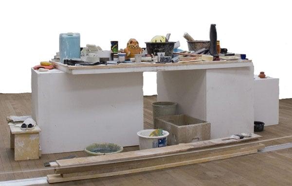 This work is a reconfiguration of an installation commissioned for the opening displays of Tate Modern in 2000. The installation resembles the interior of a workshop full of everyday materials, but is actually an accumulation of polyurethane sculptures carefully carved and painted to seem indistinguishable from the originals. The artists visited Tate Modern a few months before it opened, when construction was still in progress. The installation was designed, in part, to recreate a sense of that working environment.