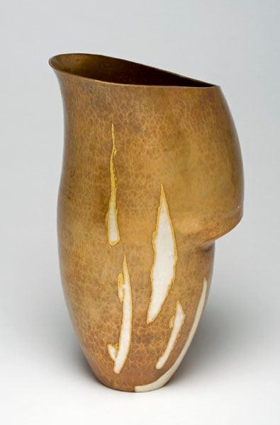 This is one of two pieces of metalwork donated by The Goodisons through the Art Fund which were originally purchased from the Bishopsland Education Trust. This was set up in 1993 as a postgraduate course which assists talented silversmiths and jewellers to make the transition from student to professional by providing workshops and training for one year. Pete Stevens was there in 1997-8.The asymmetrical form of StevensÂ’s copper and white metal vessel is characteristic of his work, which is scarce, because he is no longer a full-time maker. Extract of an article in the 2007 Art Fund Review written by Julia Poole.