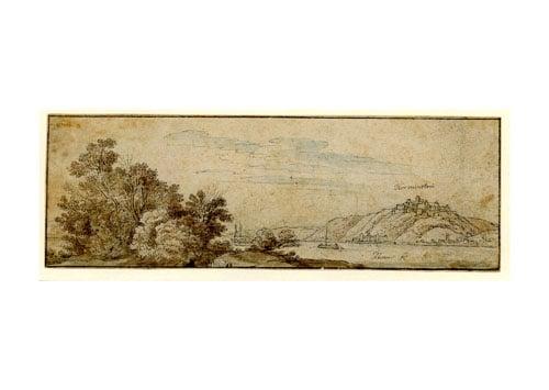 Study for an engraving depicting a landscape with a view of Ehrenbreitstein on a hill above. This is one of 111 drawings bequeathed to the British Museum by Rosi Schilling in 1997. The majority of this collection of drawings formed by Dr Edmund Schilling was bequeathed to the British Museum through the Art Fund by his widow, Mrs Rosi Schilling, in 1993. Schilling was a former curator of the Stadelsches Kunstinstitut in Frankfurt, who emigrated to England in 1937. He was one of the few acknowledged specialists in this country on German graphic art, and built up his collection during the 1940s and 1950s in London when, Northern drawings were unfashionable and could be bought relatively inexpensively. His collection included drawings by major artists such as Hans Baldung and Lucas Cranach.