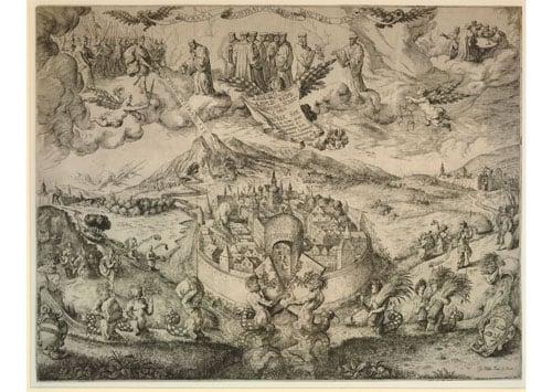 An allegorical representation of Moravia and the surrounding region with a dedication by Johannes Lyssowsky of the Jesuit University in Olmutz to the Town Senate. Unrecorded print executed in the last year of the artist's life at Vienna where he worked for the Emperor Ferdinand III.