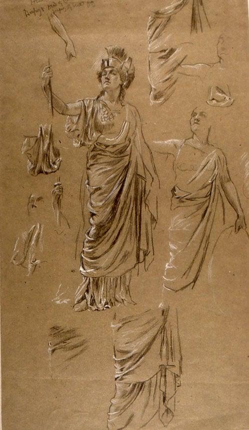 Villager & Hard Hit & Charcoal drawing of draperies, 1861–1945