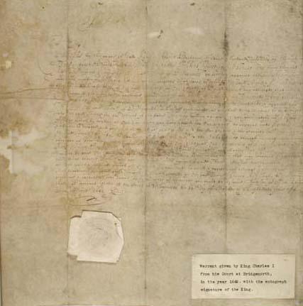 Warrant of Charles I appointing Richard Herbert, 2nd Lord Herbert of Cherbury, Governor of Bridgnorth, co. Salop; Bridgnorth, 14 Oct. 1642.