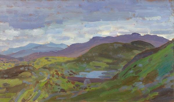This works portrays the essence of the mountain landscape of Wales. The exact view depicted in this work may not be pin-pointed, but it captures the air of the Brecon Beacons. It is now thought to depict mountains in North Wales. Most of Augustus John's paintings in Welsh museum collections are portraits and this work is the first Welsh landscape in the National collection.