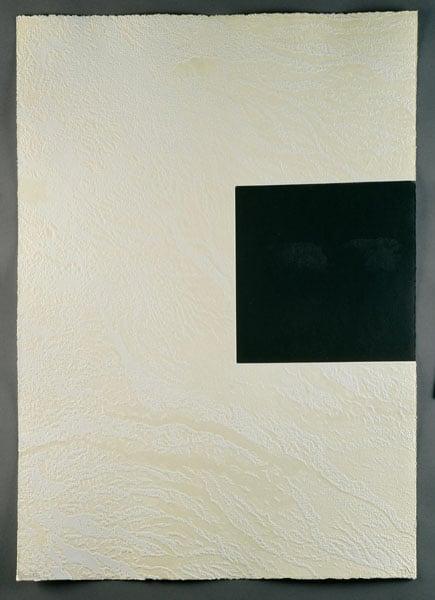 The artist decided to mix several printing techniques, a porcelain object representing an icile and a photograph documenting how this mould was produced. In an unconventional way, Trockel has mixed dark aquatint plates together with heavily bitten plates showing photomechanically transferred and enlarged details of topographical maps, imitating snow drifts. The ceramic object is a cast of an icicle found in the Engadine.