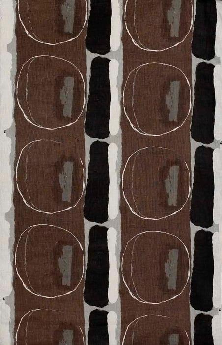 This textile hanging was commissioned for the interior of the Altnagelvin Hospital in Derry by the architect Eugene Rosenberg of the firm Yorke Rosenberg Mardall. It was screen printed by the Edinburgh Weavers (1920s-60s), the experimental arm of the textile company Morton Sundour Fabrics Ltd. The striking design of floating lines and circles is a rare example of textile work for an artist most closely associated with painting, for example Scott's large mural for the hospital, 'Four Seasons' (1959). It is from an edition of four. Purchased by the Art Fund with the assistance of the Esmée Fairbairn Foundation.