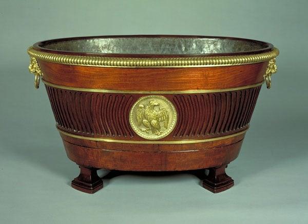 This sumptuous wine cooler, modelled on a Roman sarcophagus, was almost certainly designed by Robert Adam for Sir Watkin Williams-Wynn's house at 20 St. James's Square which was not only designed by Adam but furnished largely from his designs. The Eating Room in particular bore the evidence of Adam's hand in every detail of its design and display. The cooler would have originally stood in the Eating Room beneath a large side table, flanked by a pair of urns, which are also in the Museum's collection.