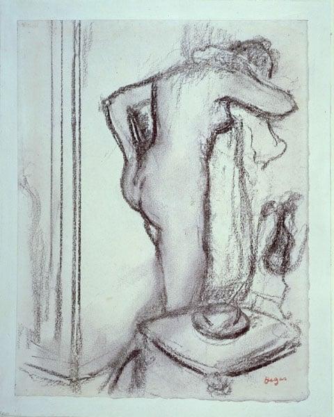 A drawing from a collection of works which also includes other studies of nudes, dancers, horses, after Donatello's 'David', and portrait studies of Therese Degas and Jules Perrot Debal.