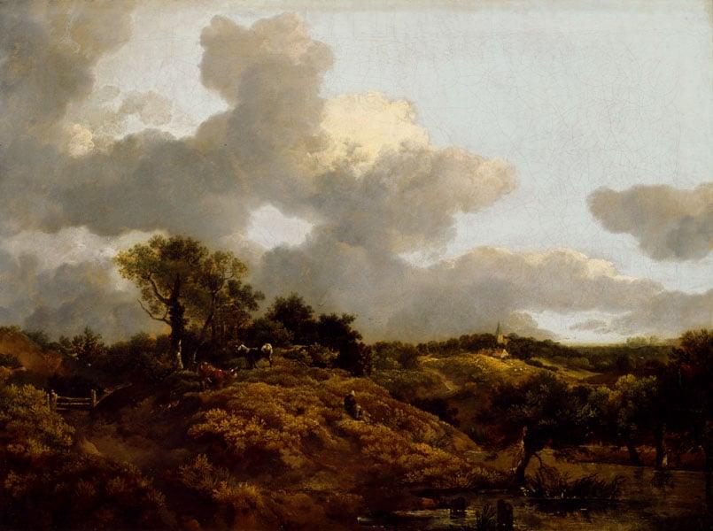 Wooded Landscape with Herdsmen seated on a Bank near a Pool