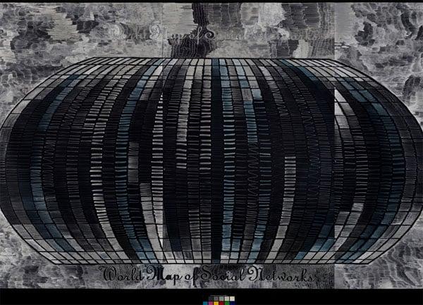 Aleksandra Mir is an established and widely exhibited international artist with roots in Poland, Sweden and the USA. Mir has used maps in her work since 'The World from Above' in 2004, and the theme has developed through a project in 2006 with 20 USA maps using different American slogans, symbols and fragments and a series of monumental maps of the Mediterranean region in 2007. Mir has described this current World Map series as ‘in a way a conclusion of all of the above’. The drawing refers back to the traditional format of the map as a form of practical information and navigation while also critiquing in its abstraction contemporary social and cultural networks. This work has been dedicated to the memory of Tessa Sidey, Curator at Birmingham for nearly 30 years and was presented by the Art Fund through Art Fund International.