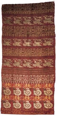 Made in Assam to cover holy books. Depicts episodes from the life of Krishna. Portrays Krishna defeating the demons Bakasura and Aghasura (or Kaliya) who are in the forms of a giant bird and serpent. There are also 3 lines of script.